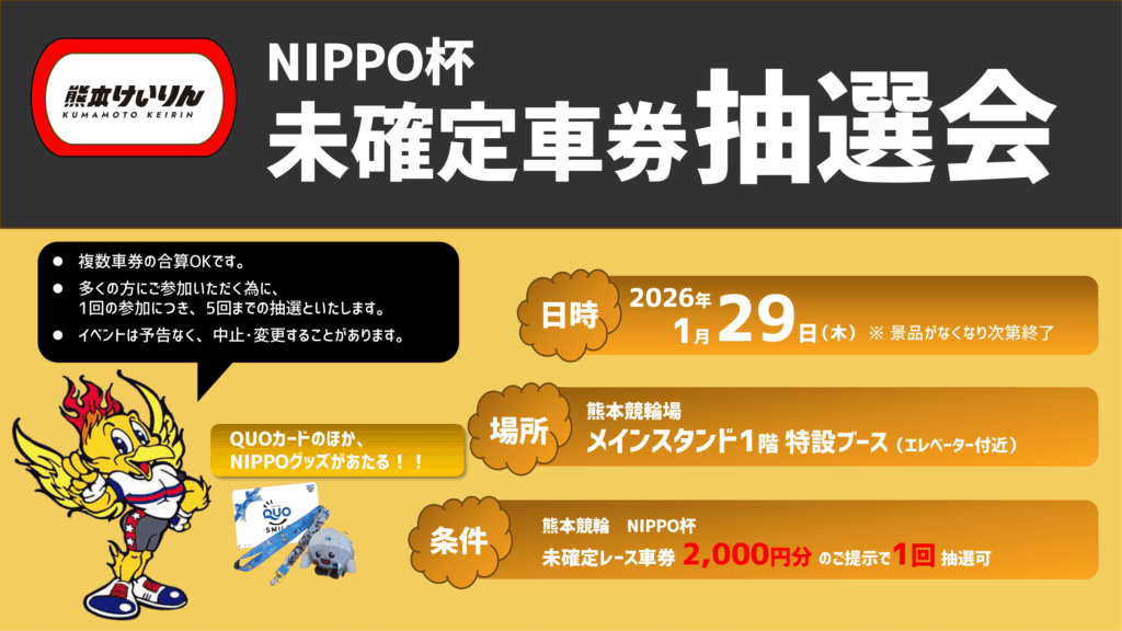 熊本市営熊本競輪「NIPPO杯」は、令和8年(2026年)1月27日(火)~29日(木)の3日間開催!