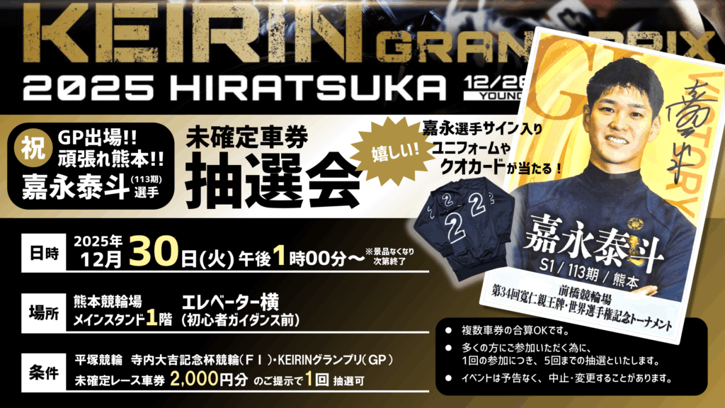 【場内イベント|12/30㈫】未確定車券抽選会【平塚競輪|KEIRINグランプリ(GP)】