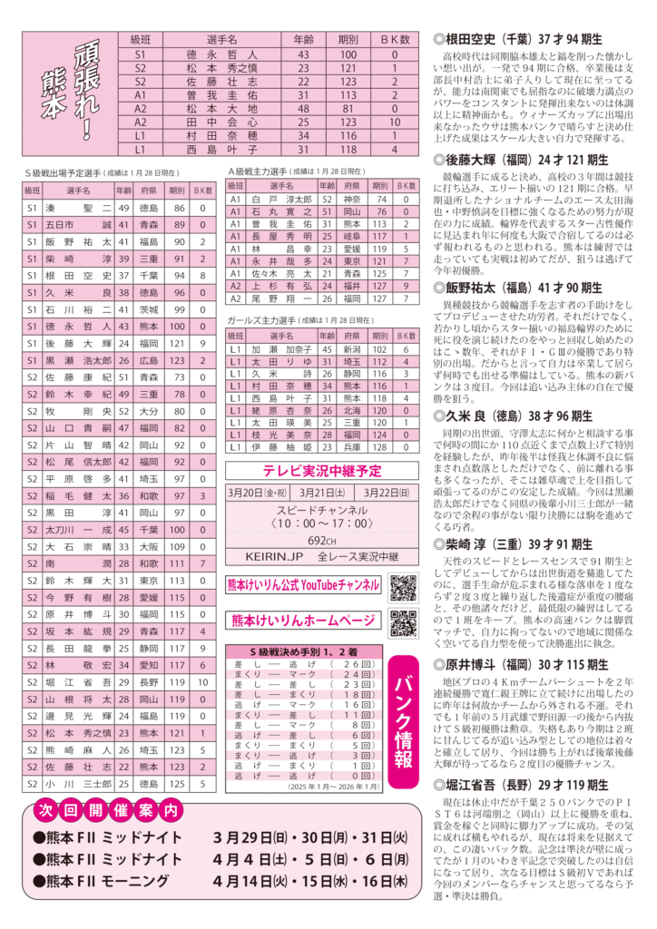情報誌【熊本市営競輪】「チャリロト協賛矢村正杯争奪戦」(FⅠ・デイ)