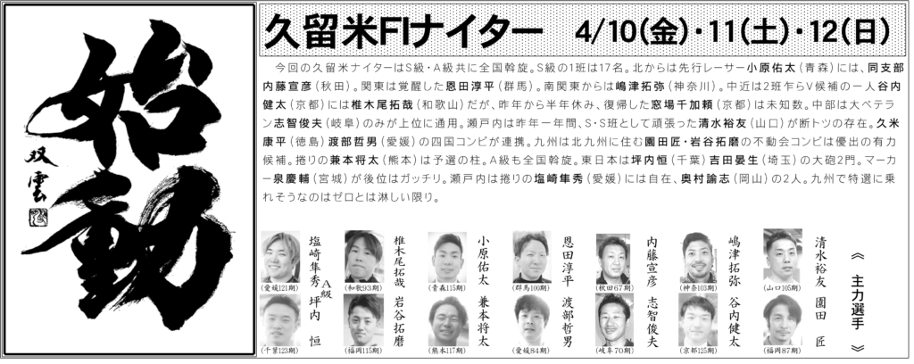 4月10日(金)〜12日(日)開催 久留米FⅠナイター