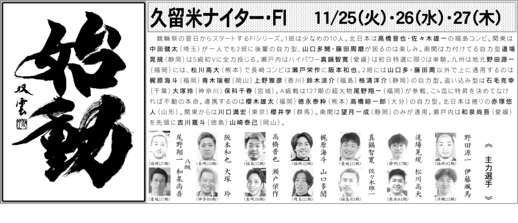 11月25日(火)〜27日(木)開催 久留米ナイター・FⅠ