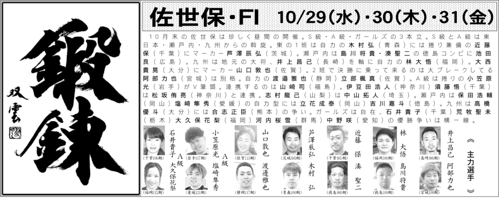 10月29日(水)〜31日(金)開催 佐世保・FⅠ