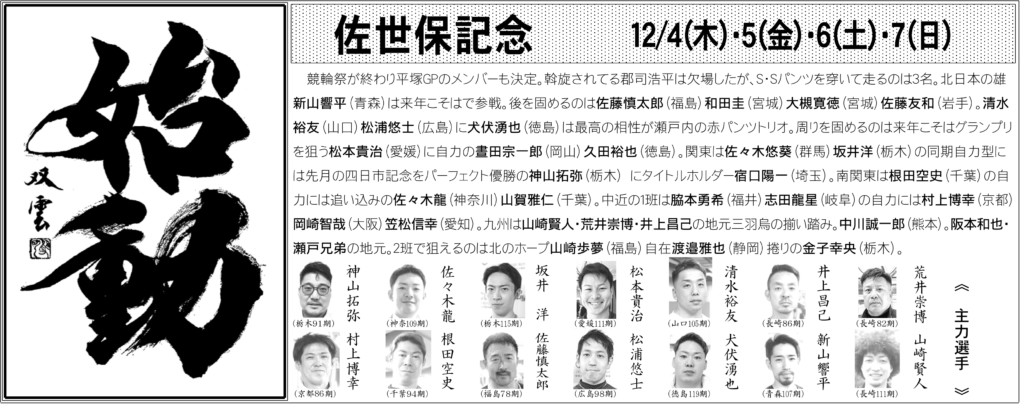 12月4日(木)〜7日(日)開催 佐世保記念
