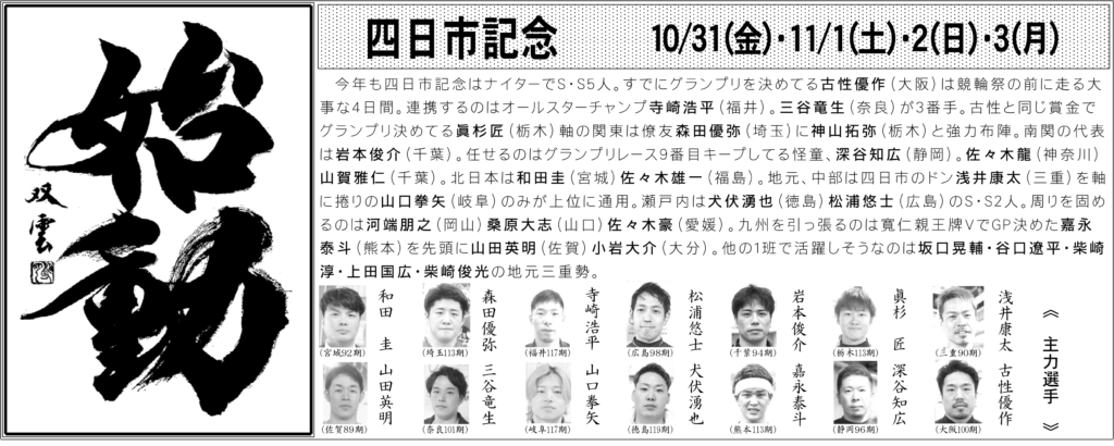 10月31日(金)〜11月3日(月)開催 四日市記念