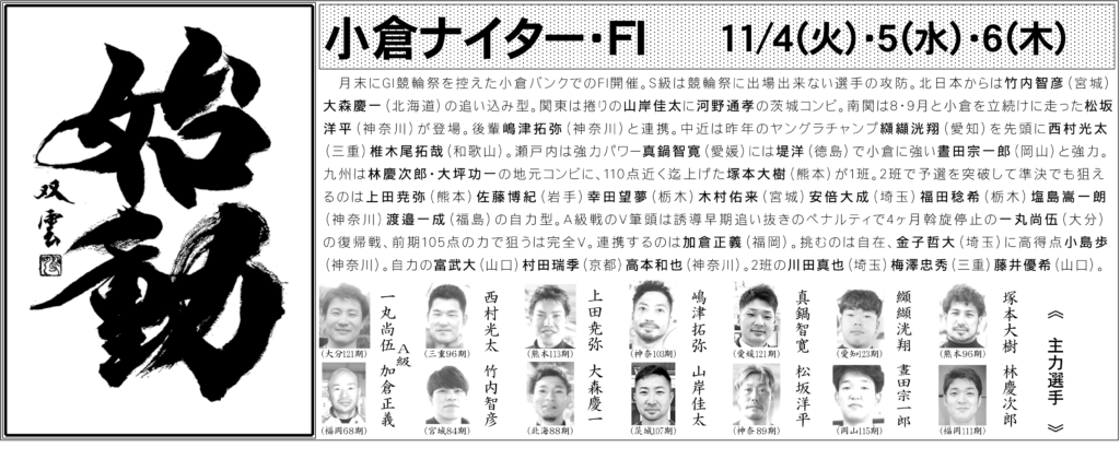 11月4日(火)〜6日(木)開催 小倉ナイター・FⅠ