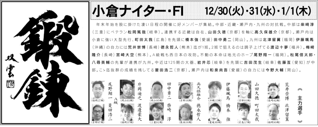 12月30日(火)〜1月1日(木)開催 小倉ナイター・FⅠ