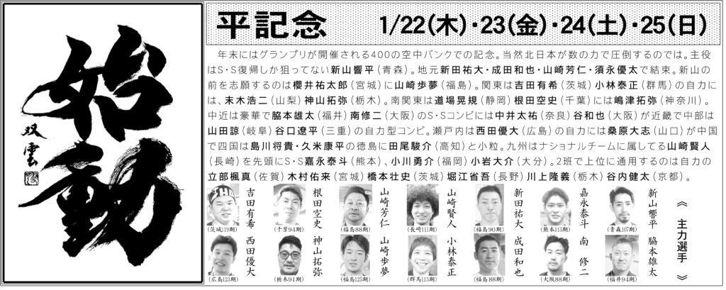 1月22日(木)〜25日(日)開催 平記念