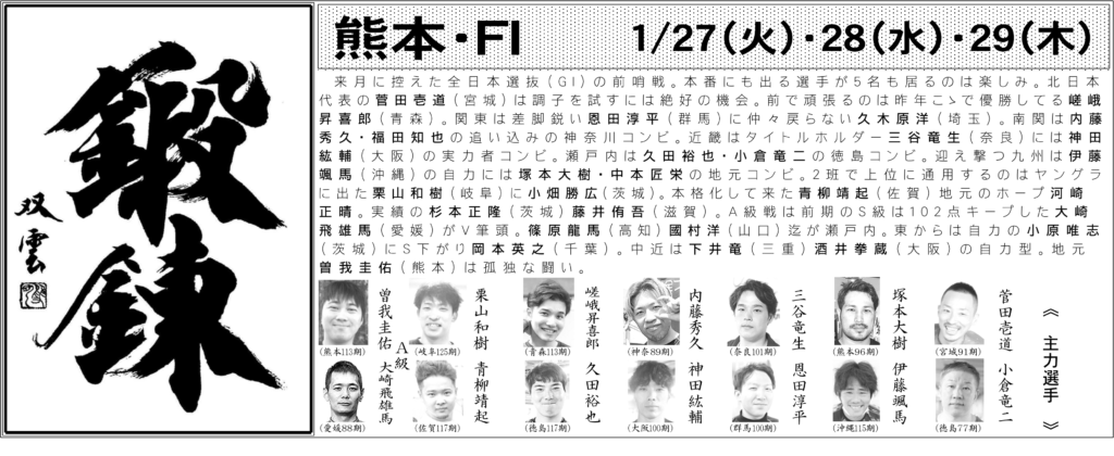 1月27日(火)〜29日(木)開催 熊本・FⅠ